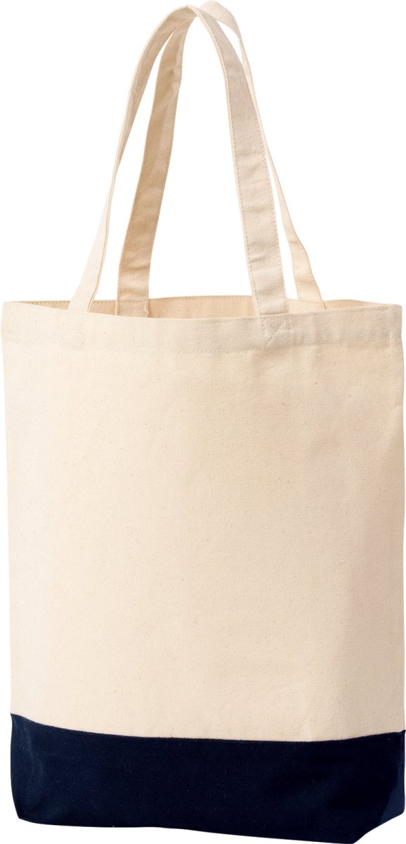 キャンバス生地の柔らかなバッグは、コーデのワンポイントとしても活躍します。ナチュラルカラーと原色カラーのバイカラーが魅力。好きなようにデザインをプラスして、このバッグをより一層オシャレに仕上げてみてください。