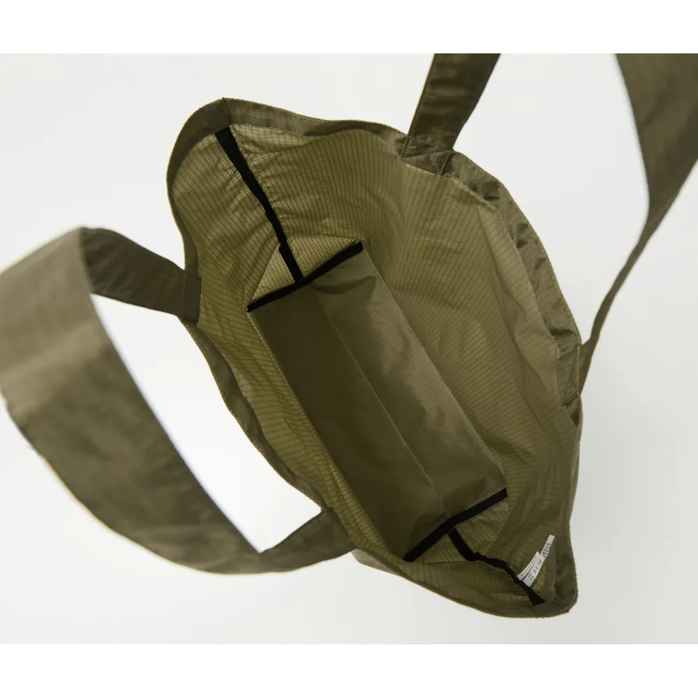 裂けにくいリップストップ生地にアクリルコーティングを施し、日常使いはもちろん、アウトドアや旅行でも頼れる相棒に。無駄を省いたミニマルデザインは、コーディネートを選ばず、どんなスタイルにも自然になじみます。折りたたんでサブバッグとして携帯できて軽量でかさばらず、実用性も抜群!今、ひとつは持っておきたいサステナブルで使えるバッグです。