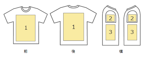 | プリント箇所 | サイズ | プリントサイズ (cm) |
