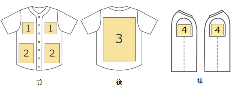 プリント箇所 | サイズ | プリントサイズ (cm) |