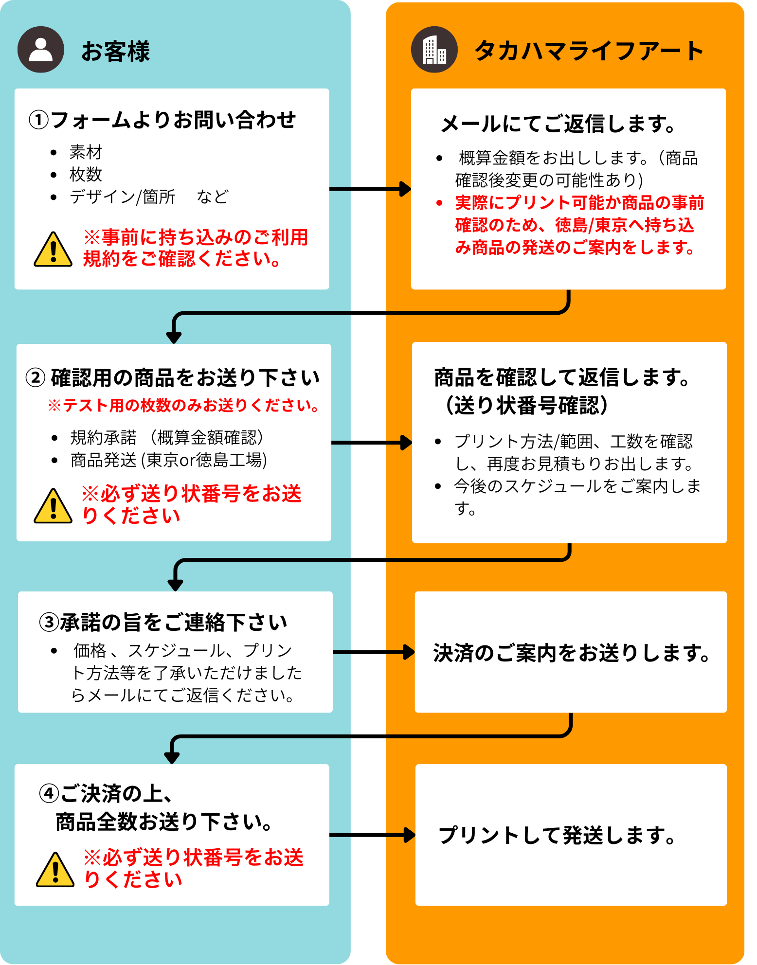 ※プリント可否の判断が難しい場合は、予備商品をお送りしていただき確認させていただく場合がございます。
