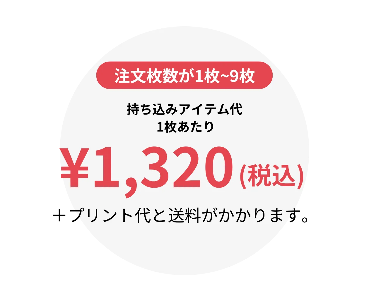 - プリント加工賃は通常と異なります。お持ち込み商品確認後にプリント方法の変更が必要な場合、お見積もり金額が変更になることがございます。必ず最終お見積り内容のご確認をお願いします。