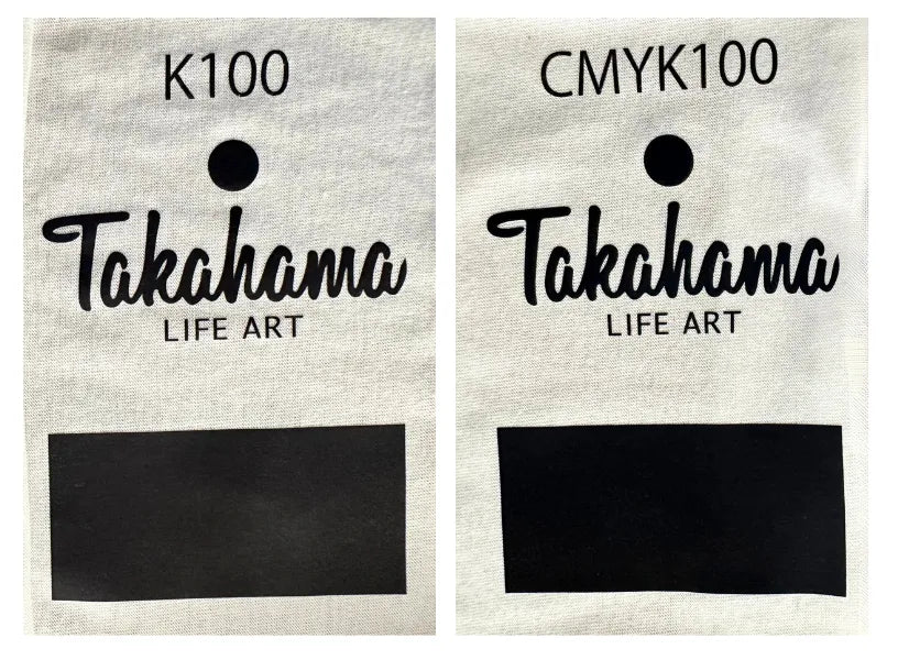 - データ上で黒を「K100」に指定していてもDTF出力の際に真っ黒ではプリントされません。