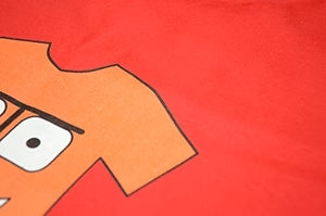 濃色生地へプリントする際は、下処理剤を塗布した後、白引きプリント(色の再現性を上げるため白インクのみを下地としてプリントします)を事前に行います。そのためプリントを二重に重ねる工程上、カラープリント後のデザインの縁に白引きプリントが若干(生地の伸縮具合により0.1~0.3mm程度)はみ出る場合がございますのでご了承ください。