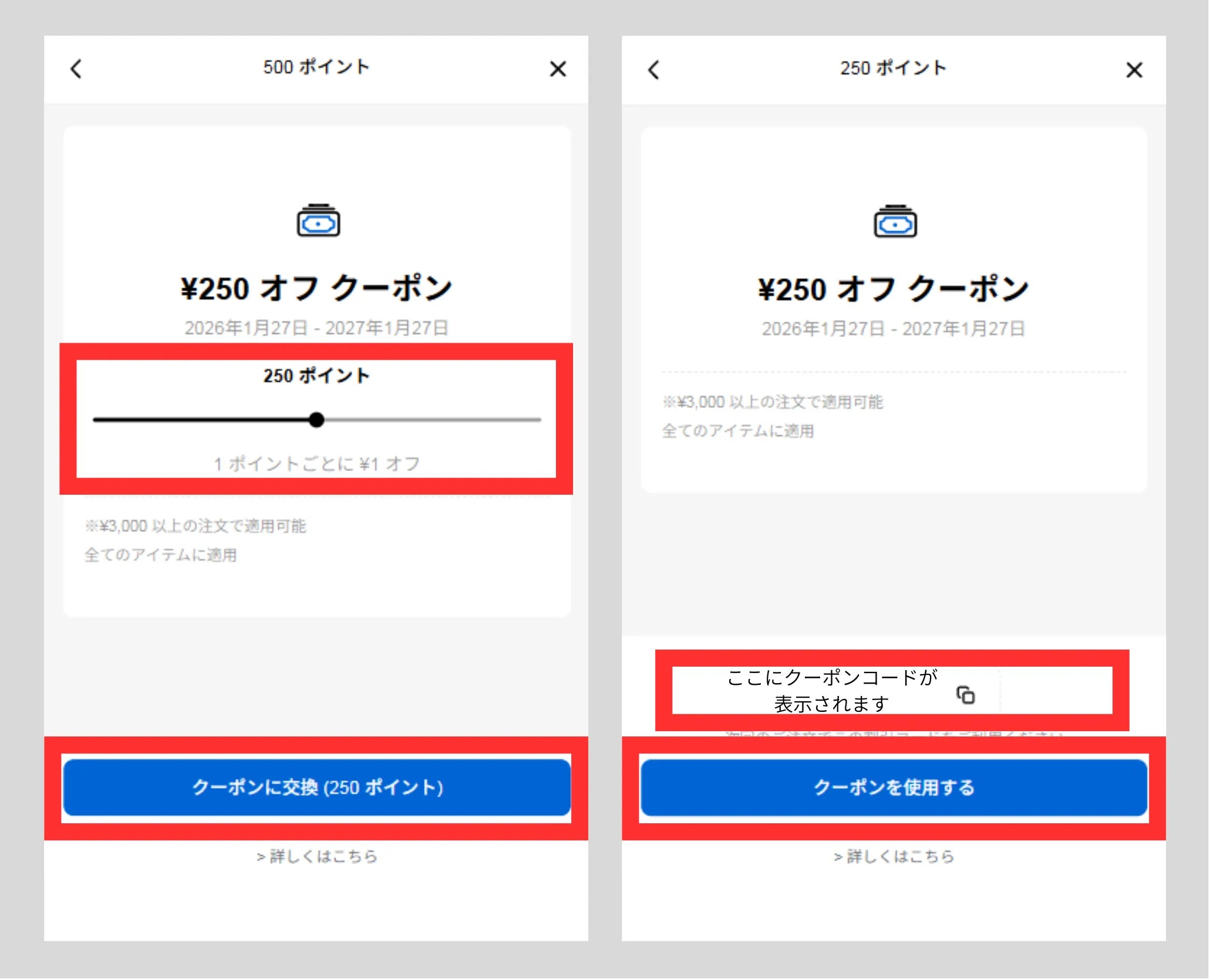 ②好きな金額でポイントをクーポンに引き換え