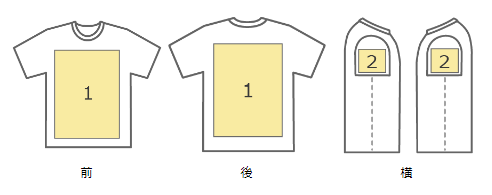 | プリント箇所 | サイズ | プリントサイズ (cm) |